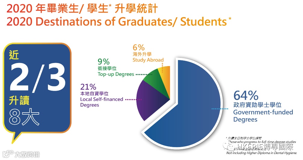 有超过2/3的学生升读香港八大名校的学士学位,