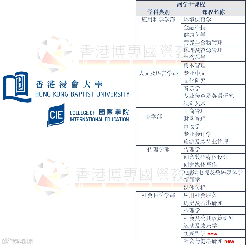 香港浸会大学副学士的官网数据表明,