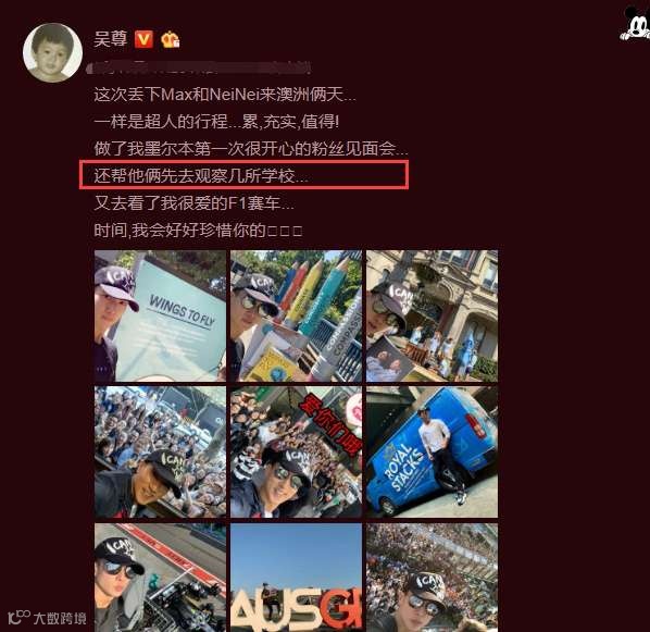一直以来,“让孩子赢在起跑线上 ”的教育观念让许多家长疯狂追崇,经济能力不错的都极尽全力把孩子送进名校就读,不差钱的明星富豪,更是从小就把孩子送出国外读贵族学校。 比如:吴尊去年就在澳洲墨尔本给8岁的neinei和5岁的max考察学校,打算等孩子到一定的年龄就送去墨尔本读书。其实,吴尊本人也是在澳洲毕业的,一直相信澳洲的教育水平,所以才把孩子从小就送出去读书。 很多在国外毕业的明星,也更倾向于把孩子送出国读书。张柏芝13岁跟随母亲移民澳洲,中学毕业于墨尔本的Camberwell Girls Grammer School。张智霖15岁跟随父亲移民澳洲,曾在悉尼的Pendle Hill High School读书。歌手杨乃文在小学五年级就和家人移居澳洲,住在悉尼,一直接受澳洲的优质教育,大学毕业于悉尼大学。