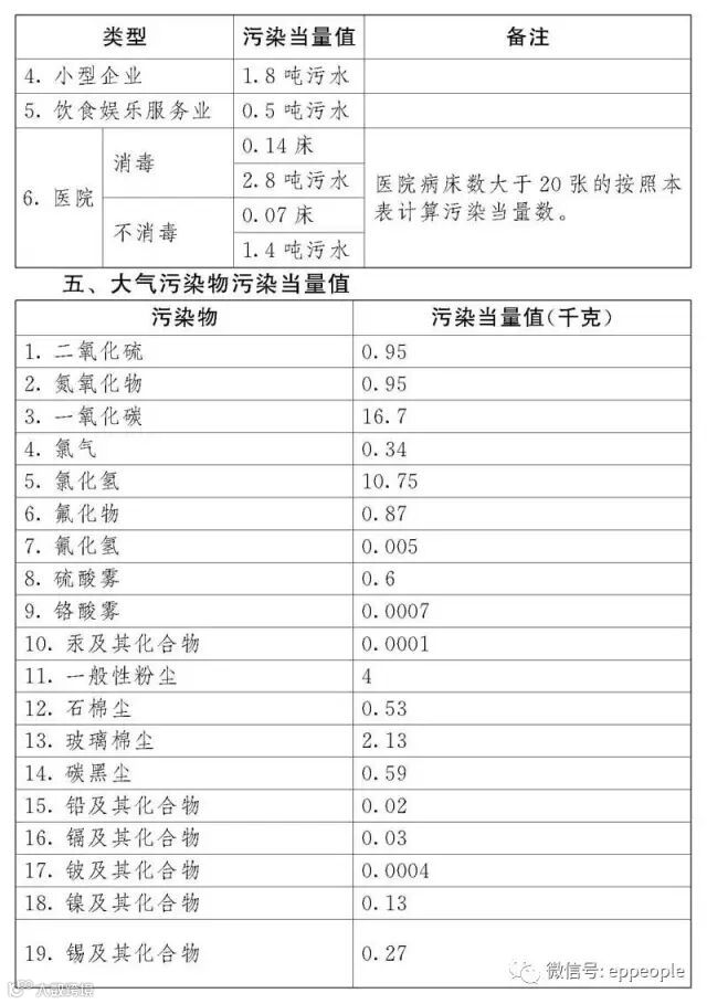(一)污染当量,是指根据污染物或者污染排放活动对环境的有害程度以及处理的技术经济性,衡量不同污染物对环境污染的综合性指标或者计量单位。同一介质相同污染当量的不同污染物,其污染程度基本相当。