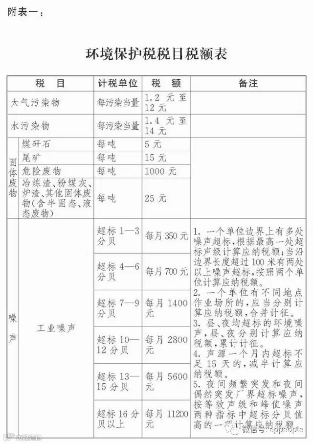 第六条 环境保护税的税目、税额,依照本法所附《环境保护税税目税额表》执行。