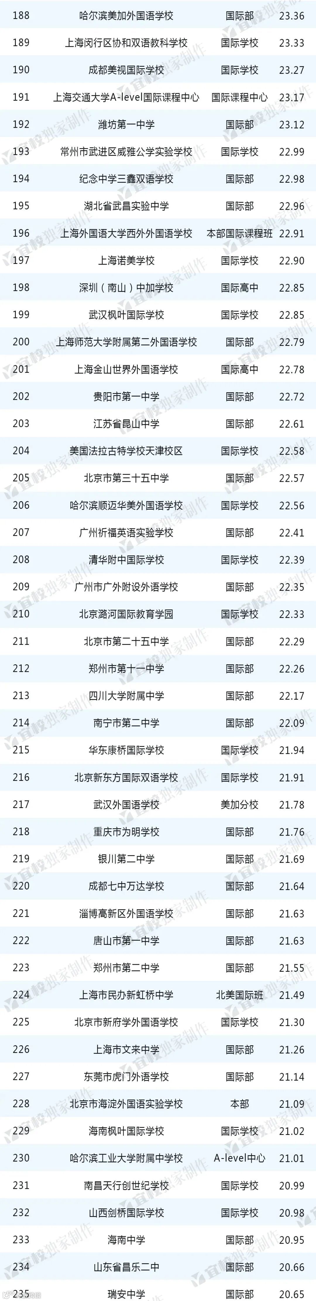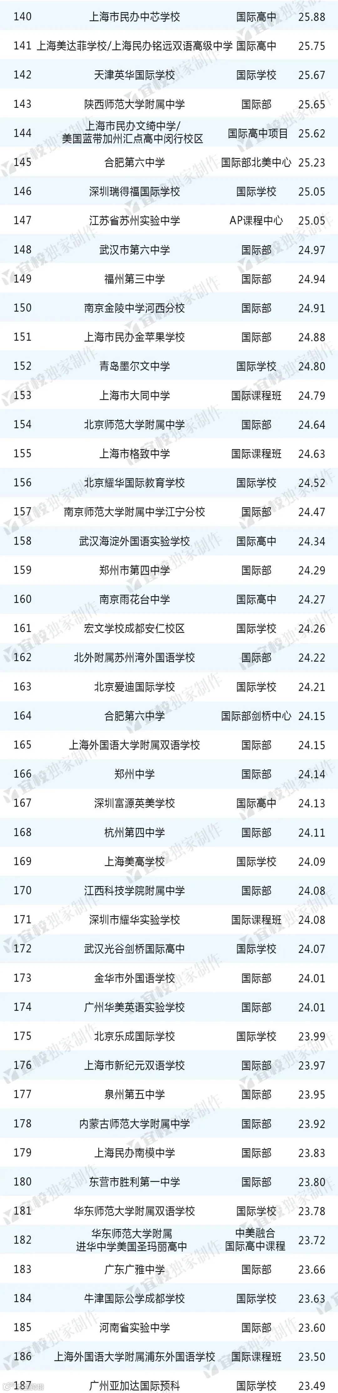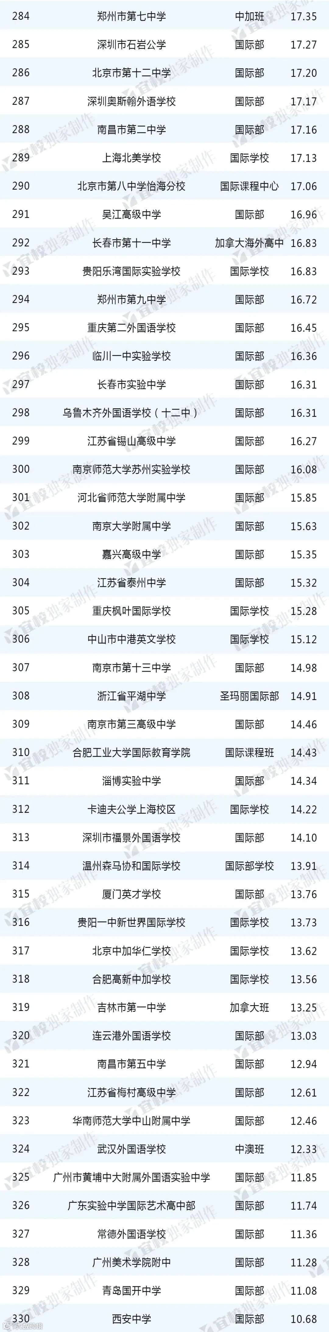 尚未有高中毕业生的国际学校/国际部不做评估。