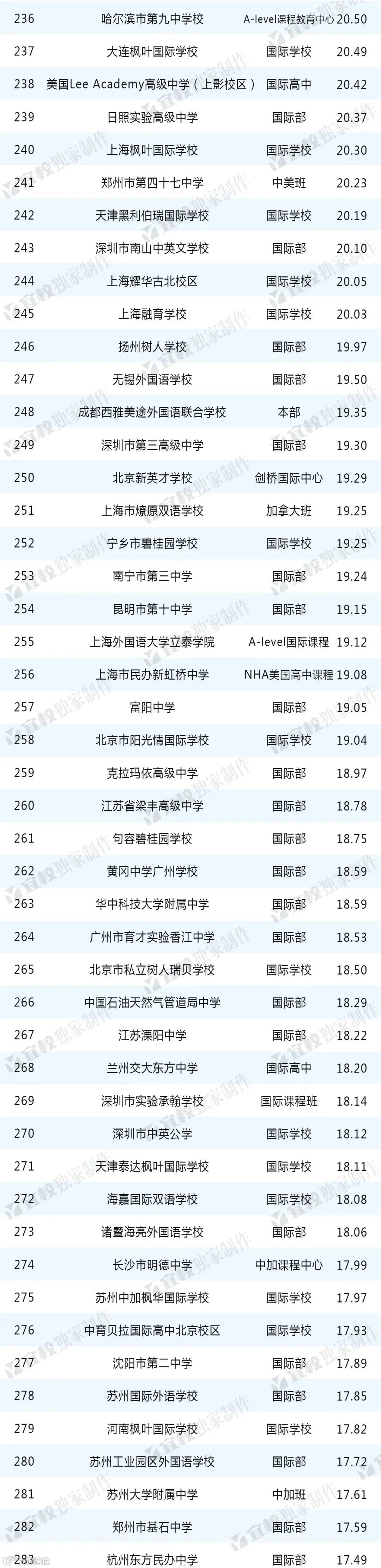 2020届毕业生人数低于15人的国际学校/国际部不做评估;