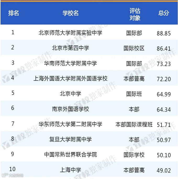 日韩、欧洲等小众留学的国际学校/国际部不做评估;