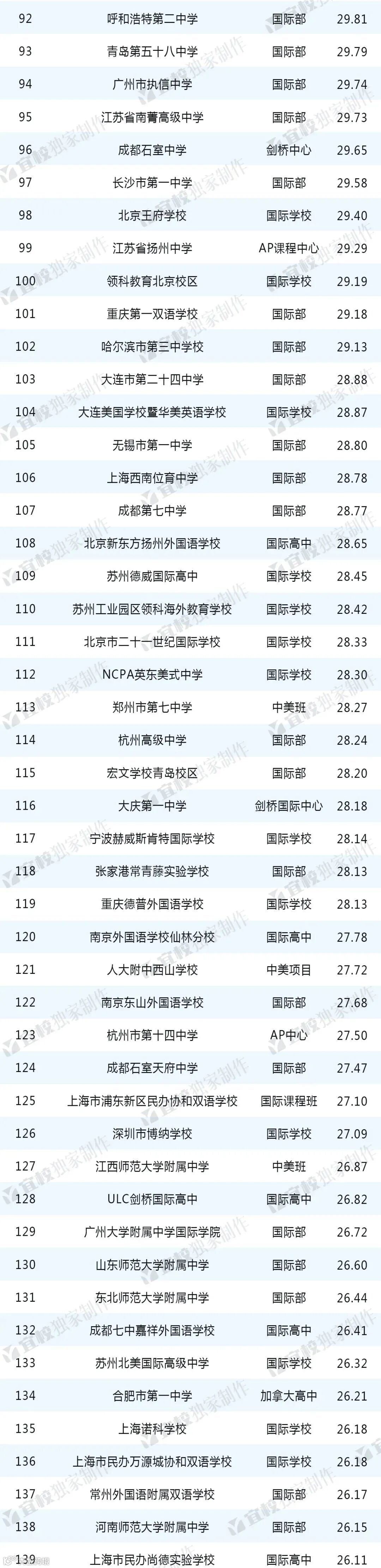 注: 2020届毕业生人数低于15人的国际学校/国际部不做评估; 纯外籍学校不做评估; 日韩、欧洲等小众留学的国际学校/国际部不做评估; 尚未有高中毕业生的国际学校/国际部不做评估。