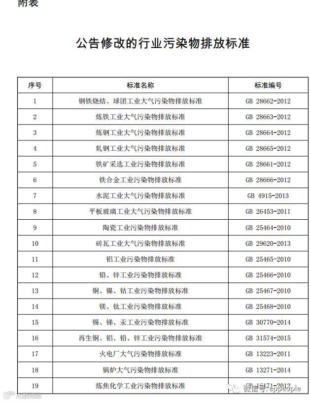 2.关于发布《钢铁烧结、球团工业大气污染物排放标准》等20项国家污染物排放标准修改单的公告(征求意见稿)