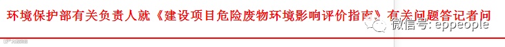 针对目前建设项目环境影响评价中有关危险废物监管存在的问题和不足,按照《建设项目环境影响评价技术导则 总纲》(HJ2.1)及其他相关技术标准的有关规定,我部印发《建设项目危险废物环境影响评价指南》,用于进一步规范建设项目产生危险废物的环境影响评价工作,指导各级环境保护主管部门开展相关建设项目环境影响评价审批,持续推进危险废物全过程管理,有效提升各级环保部门对企业危险废物的监督管理水平,切实从源头有效防范危险废物污染环境。
