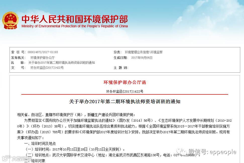 为贯彻落实《国务院办公厅关于加强环境监管执法的通知》(国办发〔2014〕56号)、《生态环境保护人才发展中长期规划(2010-2020年)》(环办〔2013〕38号),切实提高环境执法队伍综合素质和执法能力,根据《全国环境监察系统2015—2017年干部教育培训实施方案》(环办函〔2015〕785号)的要求和《环境保护部2017年度培训计划》安排,我部决定举办2017年第二期环境执法师资培训班。现将有关事项通知如下: