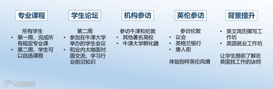 第二周:开始有跨学科的专业座谈会和会议,学生每天可以自由选择想听的课程,让学生体验不一样的牛津学堂。