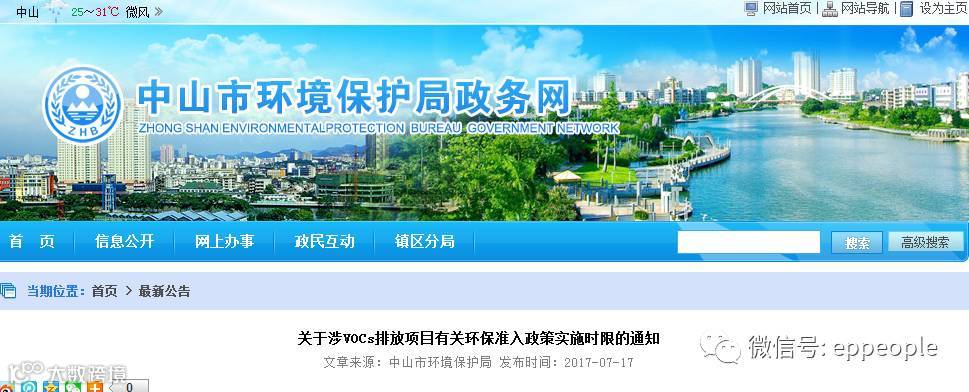 为持续改善我市环境空气质量,严格涉VOCs排放项目的环保准入,我市大气污染防治工作联席会议办公室于2017年6月14日,印发了《中山市固定源挥发性有机物综合整治行动计划(2017-2020年)》(中环[2017]71号)(下称“《行动计划》”),为落实《行动计划》有关要求,现就涉VOCs排放项目有关环保准入政策实施时限通知如下: