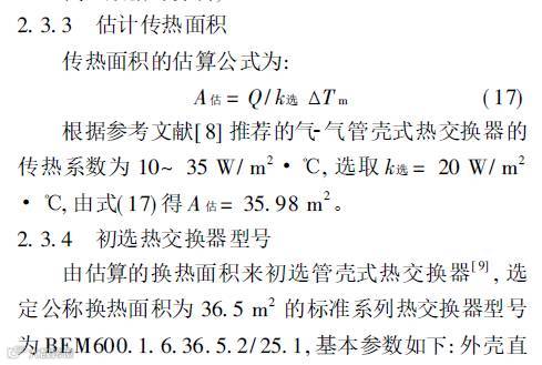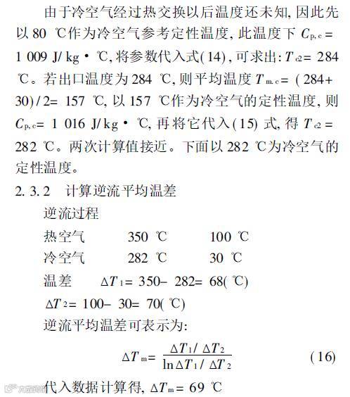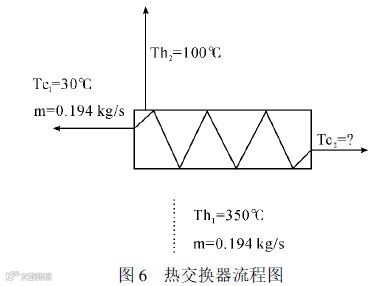 热交换器的作用就是实现冷热流体的热交换过程, 图6 表示所需要实现的热交换过程。为减少废气的泄露几率, 选择需要预热的废气走管程, 燃烧后产生的高温烟气走壳程, 各物性参数都标注在图6 中。