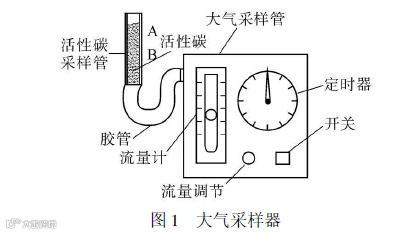 富集采样法一般是将大气采样器配合采样管或液体吸收管使用, 适用于采集低浓度的有害气体。采样装置如图1 所示。样品采集完后, 用橡胶把采样管的两端封好, 做好标记,放进棕色的口袋内, 带回实验室进行样品分析。