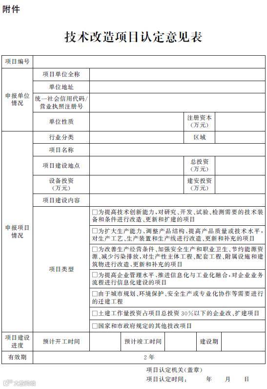 附件:技术改造项目认定意见表