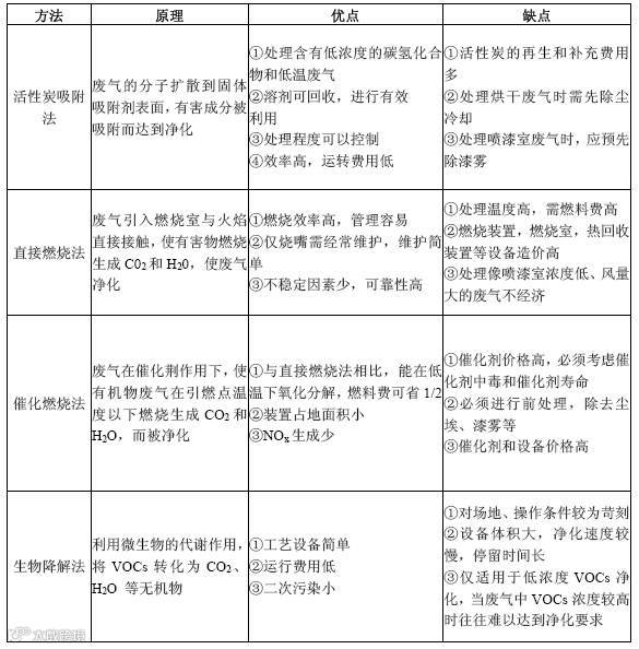 一般认为,对于高浓度(>5000 mg/m3) 或比较昂贵、有价值的VOCs,宜采用吸附法、吸收法、冷凝法、膜技术等加以回收循环,利用吸附技术应用于VOCs 污染的控制具有明显的优点,设备简单,操作灵活,是有效和经济的回收技术之一。而对于中等浓度或低浓度(<1000 mg/m3) 的VOCs,采用一定的技术将其降解、销毁(催化燃烧技术、直接燃烧法、生物降解、光催化降解、等离子体技术)是较经济、合理的治理办法。