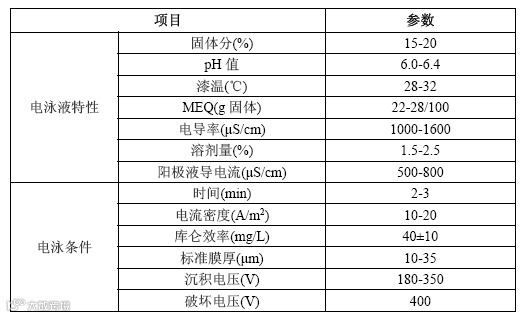 表2-2 家用电器壳体阴极电泳涂装工艺参数