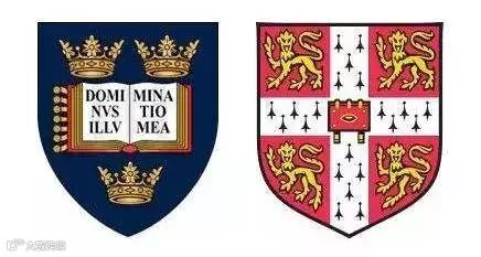 ▲两校校徽:左为牛津,右为剑桥
