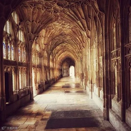 下图是学院内的通道走廊,哈利波特中3位主人公曾经坐在这里窗边聊天。