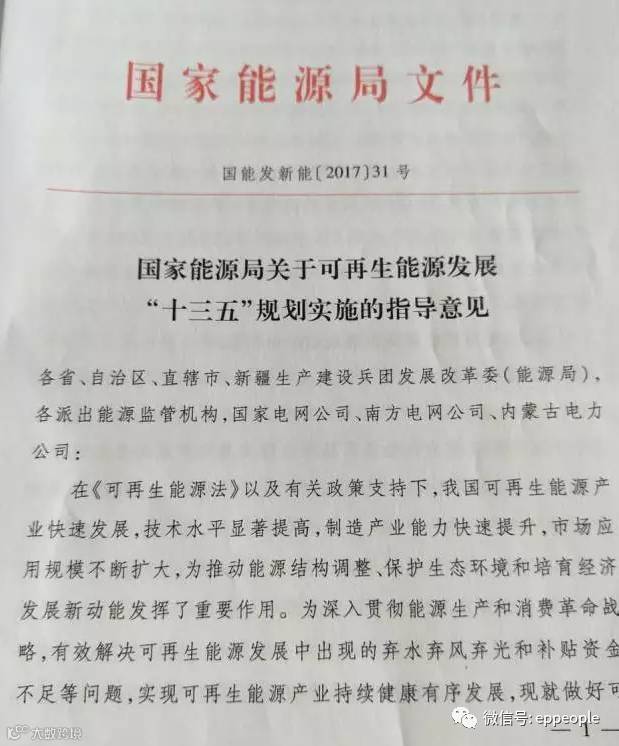 国家能源局关于可再生能源发展“十三五”规划实施的指导意见