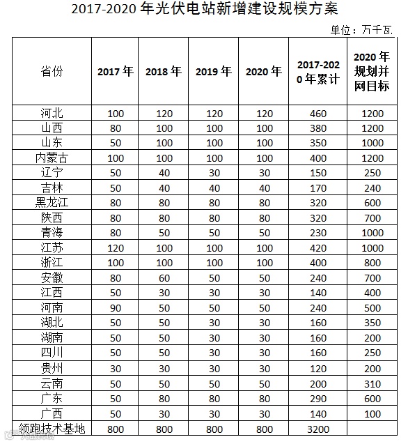 7、2017-2020年每年安排领跑基地项目800万千瓦,由国家能源局统一组织竞争优选确定;