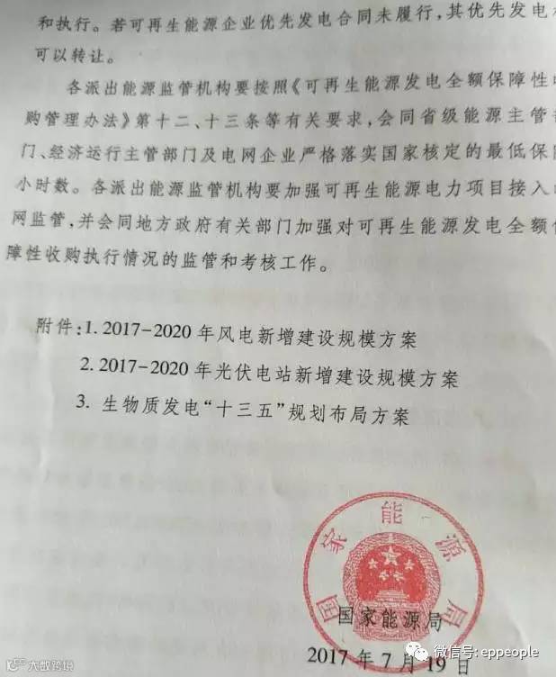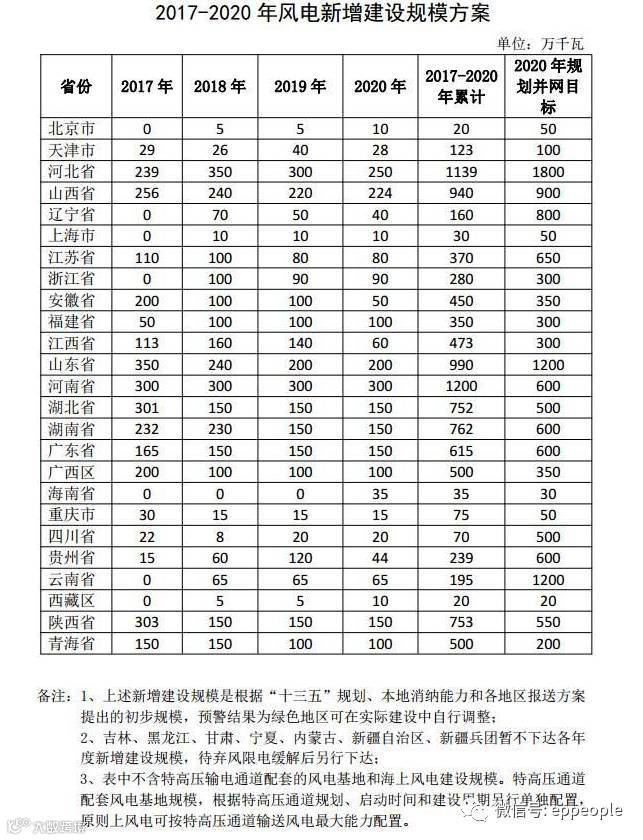 根据国家发展改革委、国家能源局发布的各类能源规划和经国家能源局批复的各地区能源发展规划以及各省(区、市)能源主管部门报送的“十三五”风电、光伏发电分年度规模建议,国家能源局将各省(区、市)分年度建设规模方案予以公布(见附件1、2),各省(区、市)能源主管部门按此方案做好规划实施工作。2017年各省(区、市)风电、光伏发电按随文公布的新增建设规模执行。2018年以及后续年度,各省(区、市)能源主管部门按年度向国家能源局报送年度实施方案建议,其中包括新增建设规模和布局信息以及电网公司关于投资建设电力送出工程和消纳能力的意见。