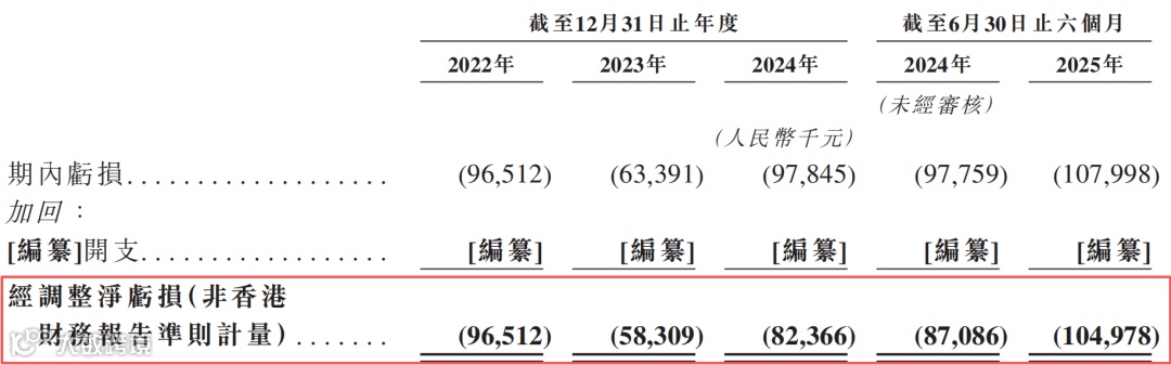 在剔除不会引起现金变动的项目后,公司近三年的经调整净亏损分别为9651万元、5831万元及8236万元。2025年上半年的经调整净亏损为1.0亿元。