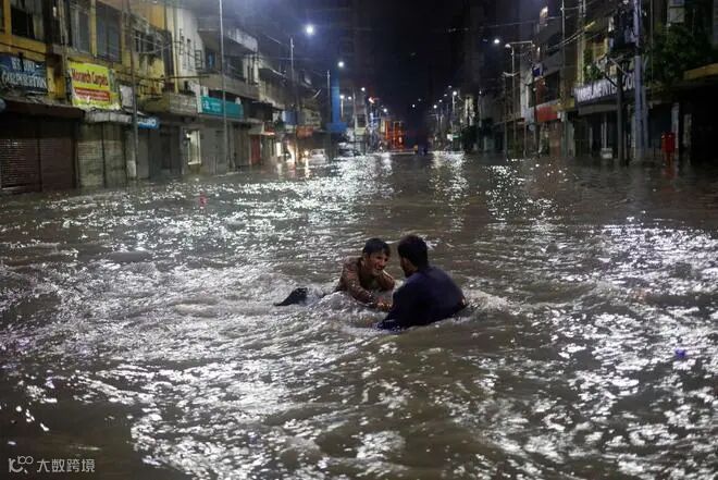 △7月24日,卡拉奇,雨季来临,当地暴雨过后街头出现积水—《环球网》