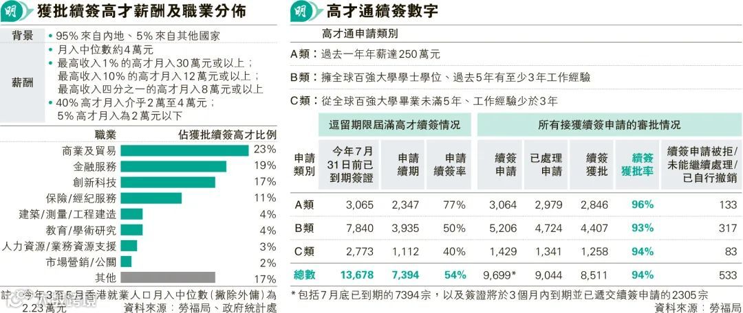 政府近期公布续签数据——近1.4万高才逗留期限届满,当中54%申请续签,94%续签成功。不过⅓的续签高才不在港常住。