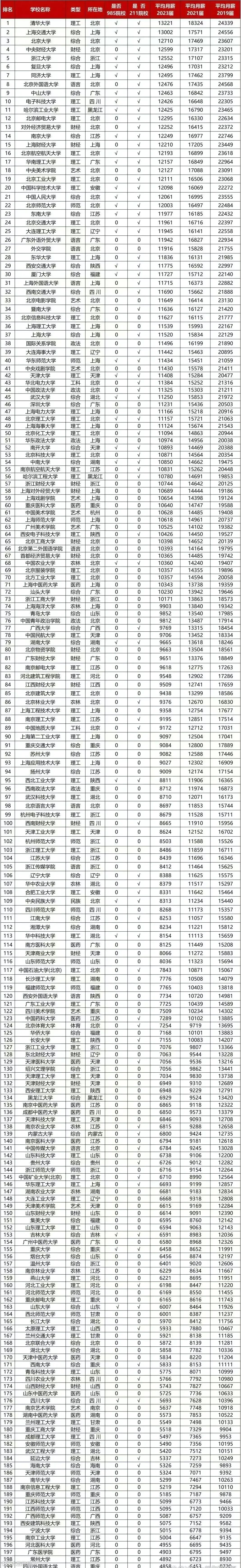 根据中国薪酬网最新发布的2025年全国高校毕业生薪酬排行榜Top200:清华大学的平均月薪最高,达到1.33万元人民币;其次是上海交通大学,平均月薪达到1.31万;北京大学紧随其后,平均月薪为1.29万元。