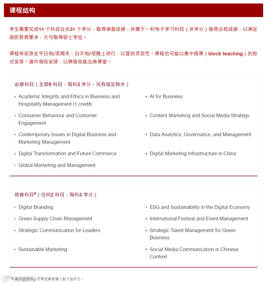 ●灵活学制适配职场需求提供一年全日制或两年兼读制选择,课程多安排于工作日晚间及周末,并采用集中授课模式。