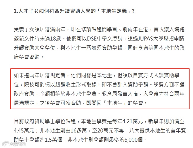 1. 人才子女如何符合升读资助大学的“本地生”定义?