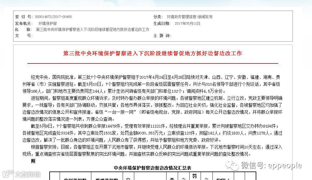 中央环境保护督察边督边改情况汇总表