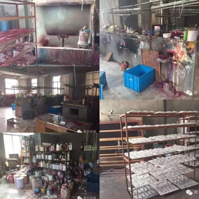 黄岩区环境保护局与南城街道办事处工办工作人员在南城街道印山路一被举报加工场检查。