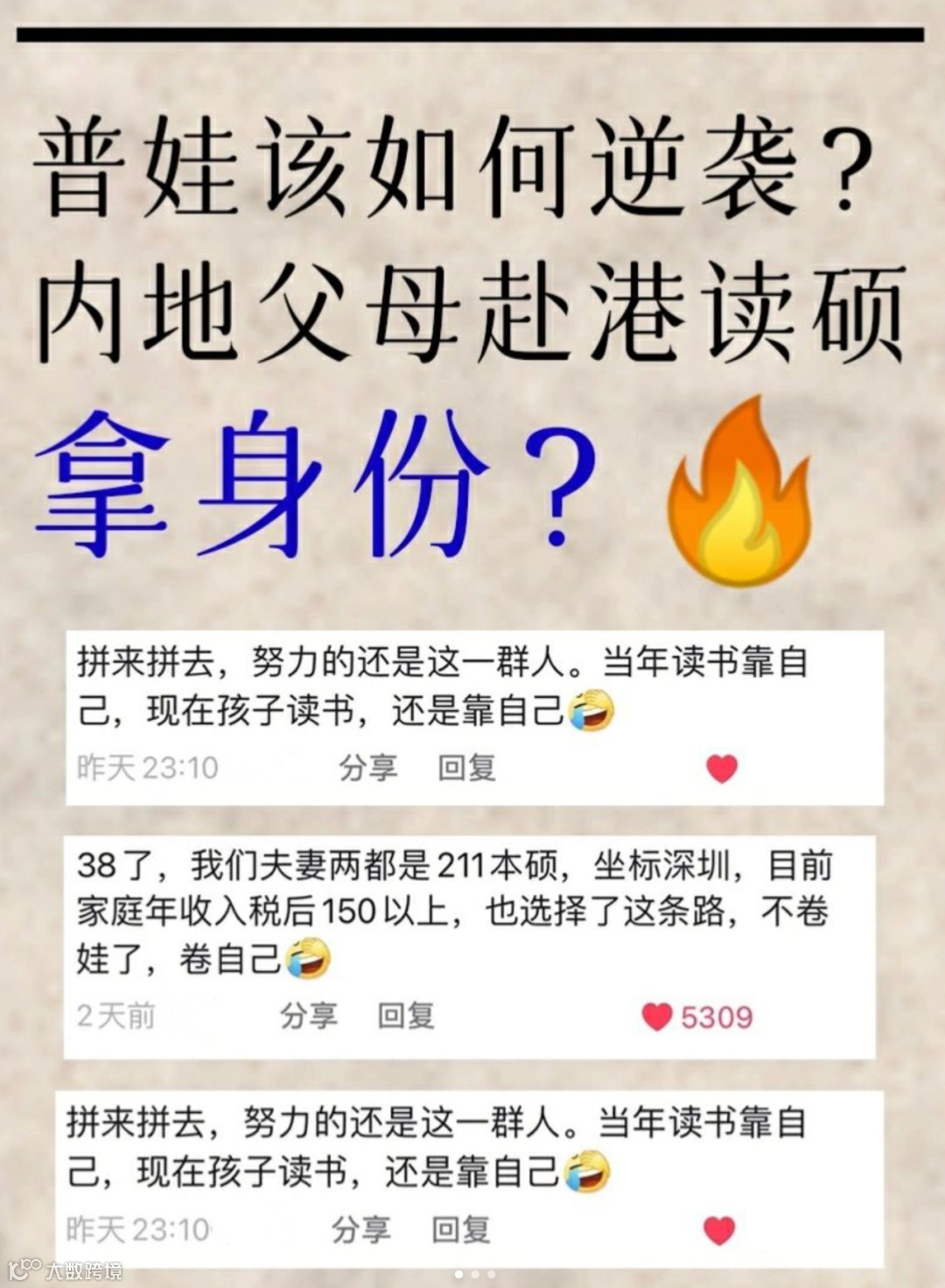 两年前申请香港硕士的露露,怎么也没想到,如今在深圳,身边1/3的父母都在考虑申请中国香港身份,而曾经被嘲笑的“水硕”也作为一种获取身份的途径被一抢而空。