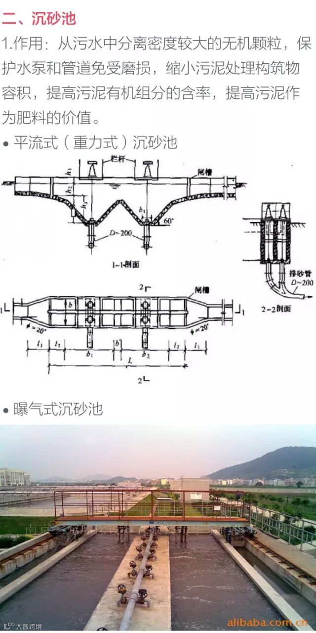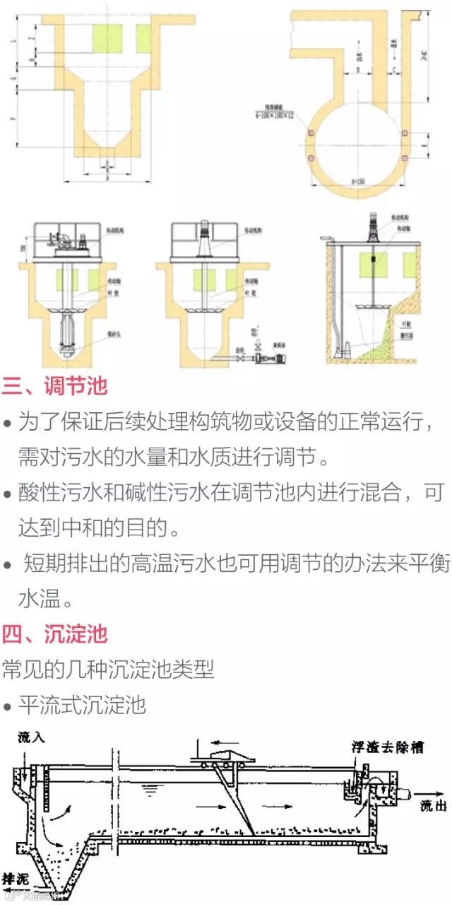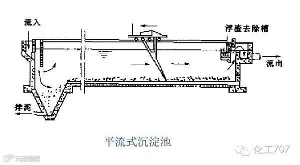 (1)平流式池:构造简单,沉淀效果较好,但占地面积较大,排泥存在的问题较多,目前大、中、小型污水处理厂均有采用;