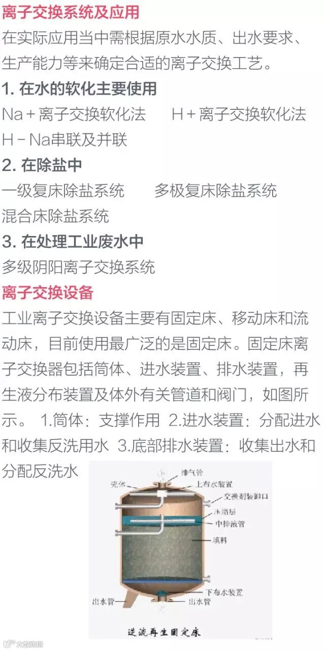 2.离子交换法:回收贵重金属,放射性废水、有机废水等