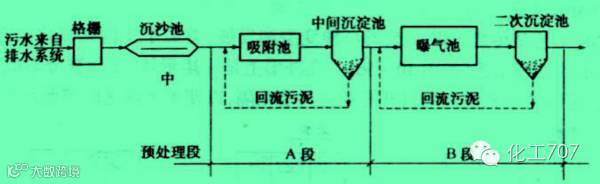 目前, 国内已有多家城市污水处理厂采用了AB 法工艺。与传统活性污泥法相比,AB法主要有下列特征:未设初沉池,由吸附池和中间沉淀池组成的A段为一级处理系统;B段由曝气池和二次沉淀池组成;A、B两段各自拥有独立的污泥回流系统,两段完全分开,各自由独特的微生物群体,有利于功能的稳定。