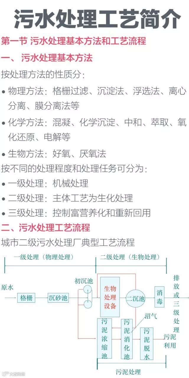 污水处理工艺流程是用于某种污水处理的工艺方法的组合。通常根据污水的水质和水量,回收的经济价值,排放标准及其他社会、经济条件,经过分析和比较,必要时,还需要进行试验研究,决定所采用的处理流程。一般原则是:改革工艺,减少污染,回收利用,综合防治,技术先进,经济合理等。在流程选择时应注重整体最优,而不只是追求某一环节的最优。