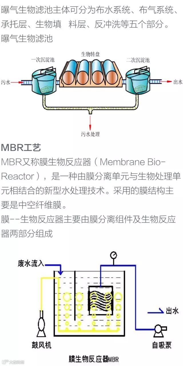对于好氧生物处理中的传统活性污泥法、氧化沟、序批式活性污泥法统称为活性污泥法;其中生物滤池、生物转盘、流化床、气提式反应器(ABS)统称为生物膜法。