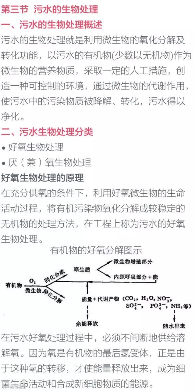 (1)污水生物处理分类:好氧生物处理、厌(兼)氧生物处理