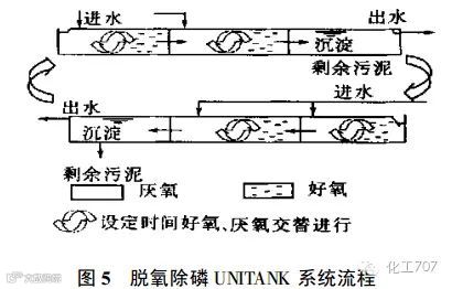 90 年代,比利时的西格斯公司在三沟式氧化沟的基础上开发了 UNITANK 系统。它由 3 个矩形池组成,其中外边两侧的矩形池既可做曝气池,又可做沉淀池,中间一个矩形池只做曝气池该工艺把传统 SBR的时间推流与连续系统的空间推流有效地结合了起来。