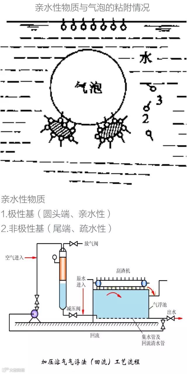 作用:气浮法又称为浮选法,它是在污水中通入空气,产生微小气泡作为载体,使污水中的乳化油、微小悬浮物等污染物黏附在气泡上。利用气泡的浮升作用上浮到水面,通过收集水面上的泡沫或浮渣达到分离杂质、净化污水的目的。