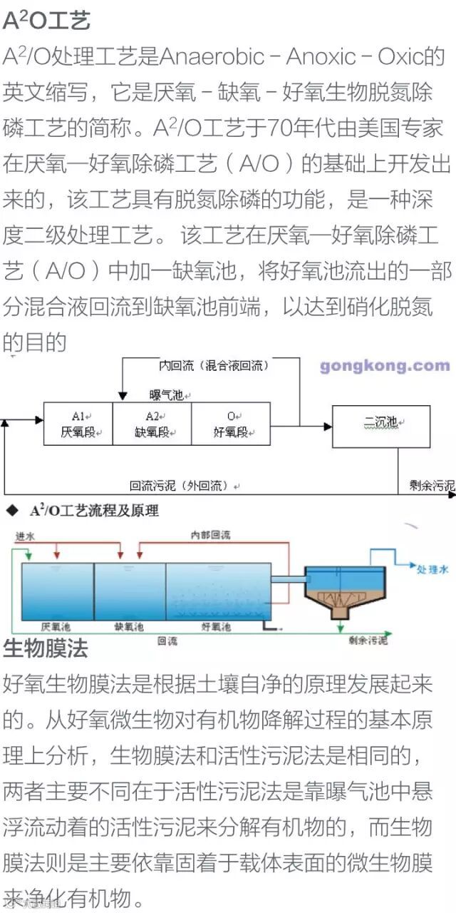 AAO法又称A2O法,是英文Anaerobic-Anoxic-Oxic第一个字母的简称(厌氧-缺氧-好氧法),是一种常用的污水处理工艺,可用于二级污水处理或三级污水处理,以及中水回用,具有良好的脱氮除磷效果。