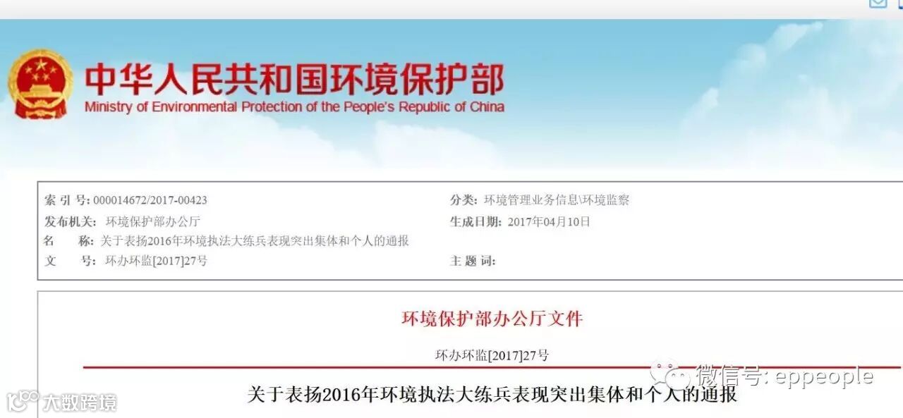 关于表扬2016年环境执法大练兵表现突出集体和个人的通报