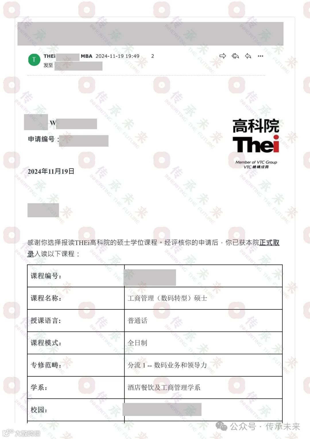 可喜可贺~恭喜各位同学,又收到一波录取喜讯!最近几天,香港高等教育科技学院(简称“高科院”,英文简称THEi)陆续发放录取。昨天下午小编就收到了15个工商管理硕士录取Offer,今天录取数量还一直在增加!