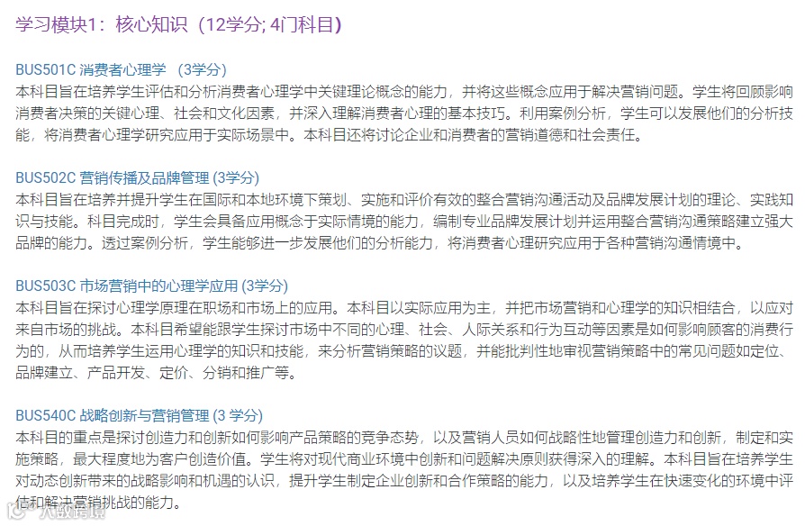 该课程具有创新性,涵盖了传统市场营销领域以及相关的心理学知识和实践技能,为不同背景和行业的专业人士提供职业发展的全面准备。本课程的设计旨在提供以就业为导向的课程设置,使学生在消费者市场营销领域获得职业优势。