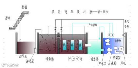 MBR 技术又称为膜生物反应器技术,利用了膜分离的选择性和高效性,同时又利用了生物处理工程的有效性和彻底性,将水中的有害物质最大限度地除去。MBR 工艺的特点是用膜分离系统代替了普通活性污泥法中的二沉池, 减少了传统工艺大部分的处理单位 ,节省了大量投资,而且耗能和一般传统的水处理工艺相近。污水在处理设备中的停留时间短,对COD,NH3-N 的去除率极高 ,出水水质达到了生活杂用水水质的标准。