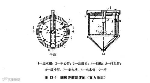 (2)竖流式池:占地面积小,排泥较方便,且便于管理,然而池深过大,施工困难,造价高,因此一般仅适用于中小型污水处理厂使用;