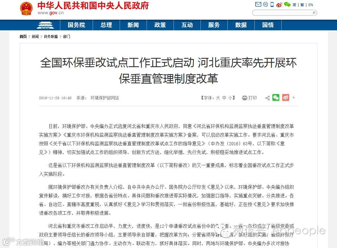 察点击题目下方蓝字关注 环保人环保垂直管理改革