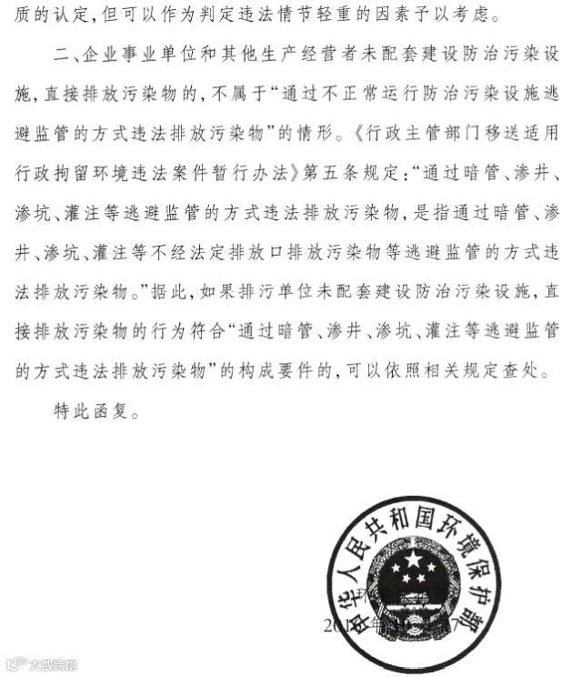 关于逃避监管违法排污情形认定有关问题的复函