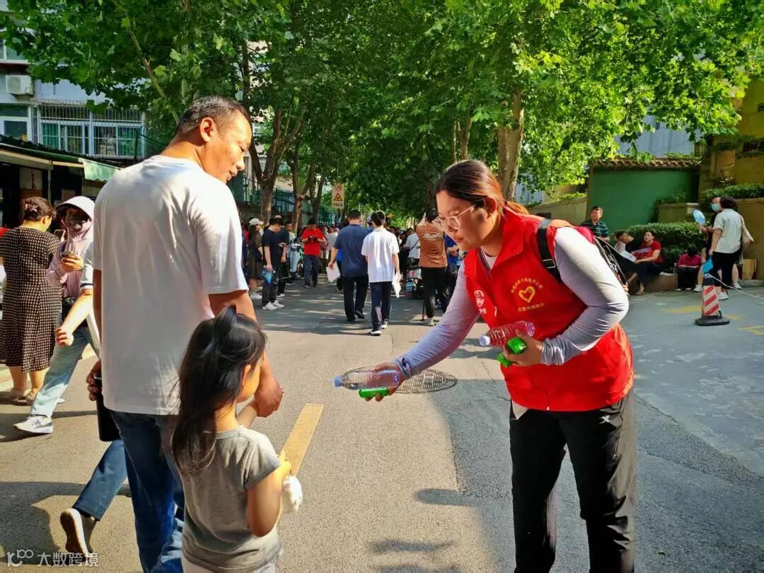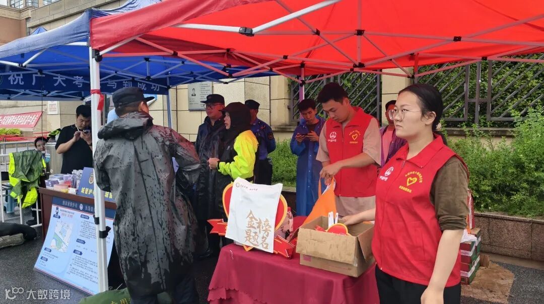 考场外,身着志愿者马甲的青年们成为一道亮丽的风景线。他们坚守岗位,用热情的服务传递温暖。